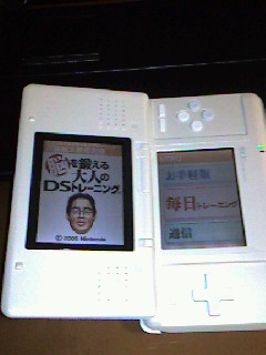 そんな中で、最近のハマリ物は、フリスクとかんずりの他に、任天堂DSの「脳を鍛える大人のDSトレーニング」れす。しかもほぼ毎日やっておりやす。いやぁ~この歳になると脳みそに自信がなくなっちゃいますからねぇ~こうしたゲームはどぉ~してもやりたくなっちゃうんですよねぇ~。(苦笑)商売上手すぎるぞ。。ファミコン世代ももう30か…(しみじみ)